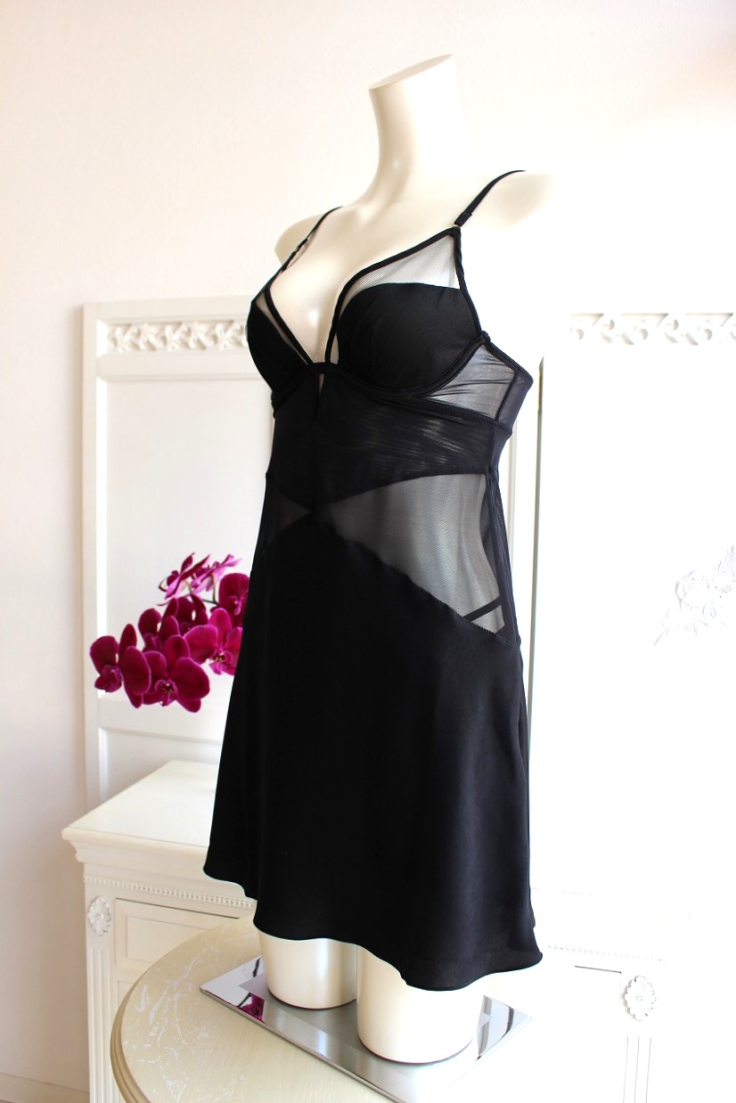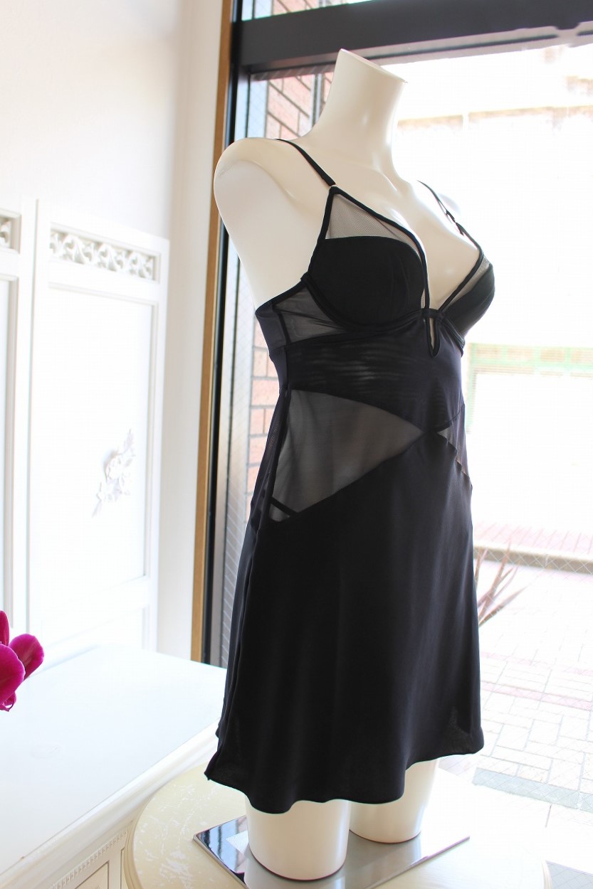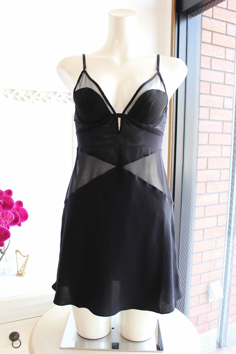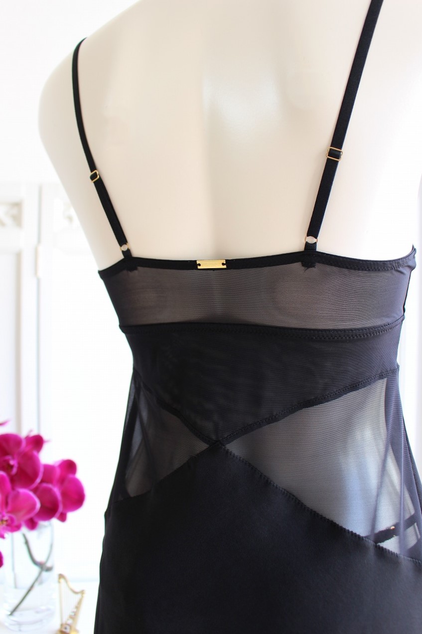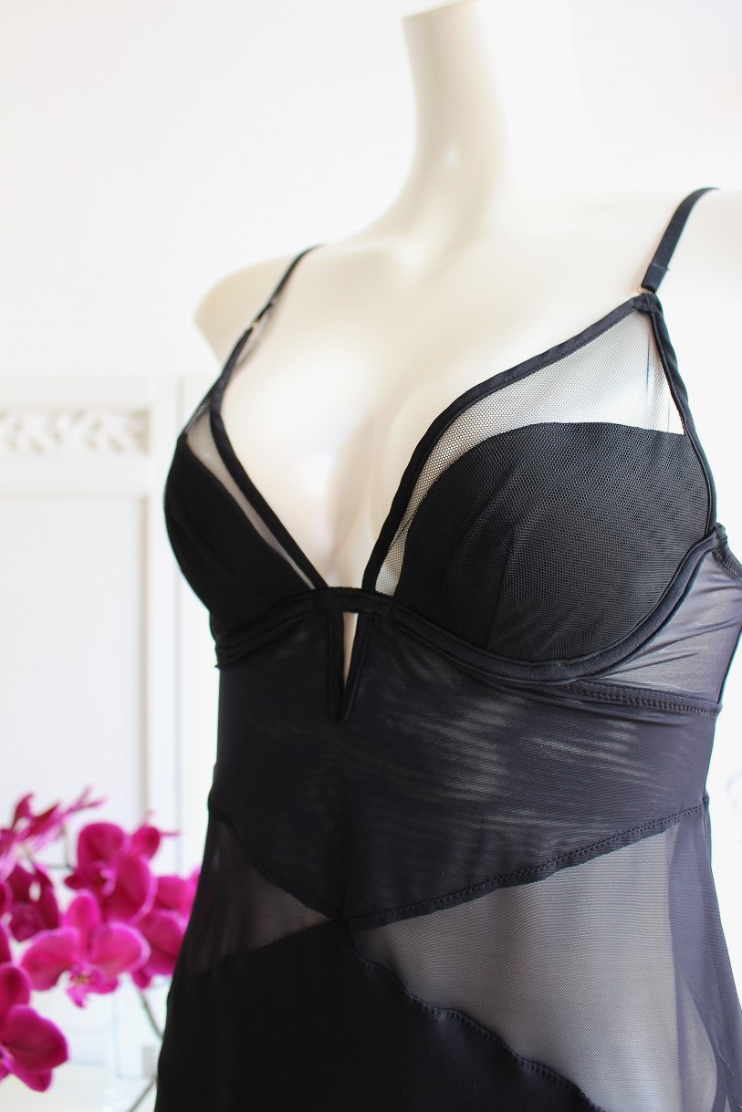 ブラックのシアーを巧みに重ねたブラキャミソールは、