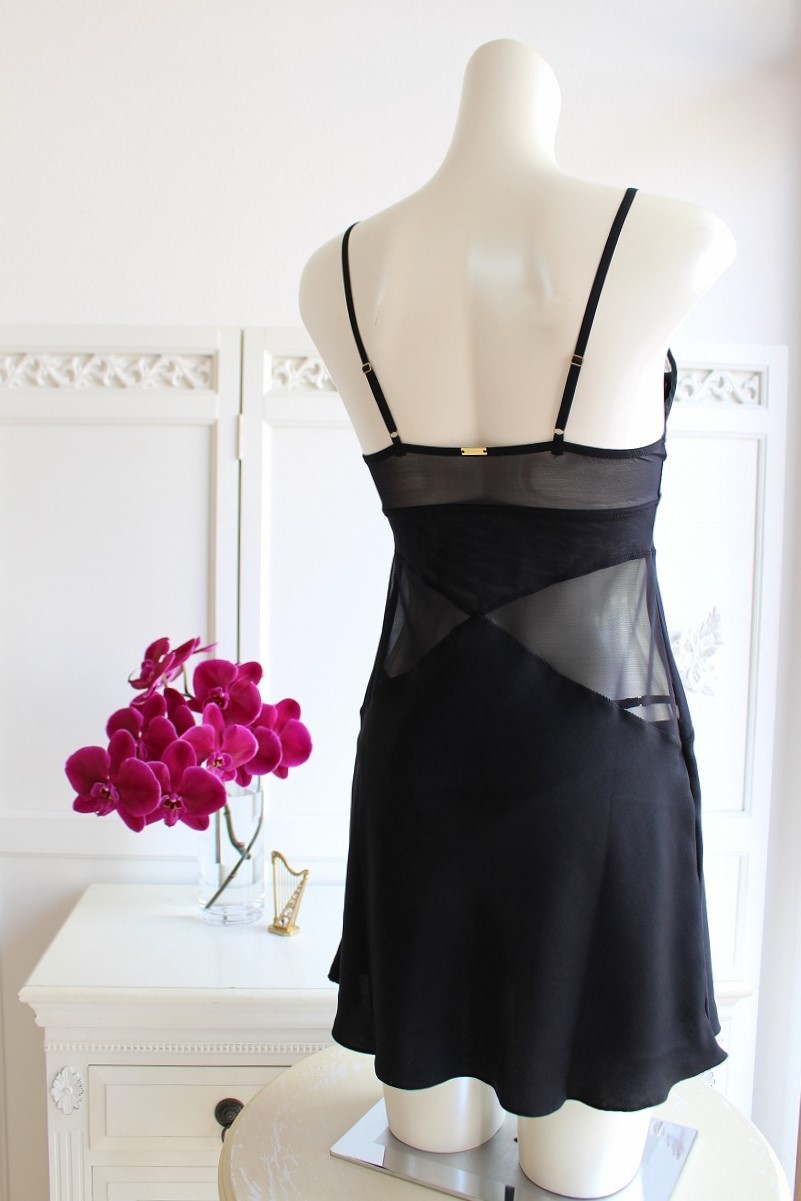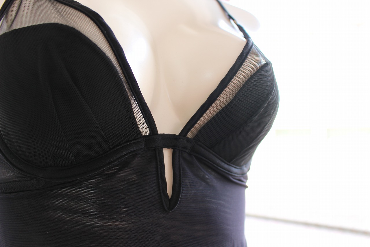 胸元からウエスト、さらに背中へと続くメッシュの透け感が、