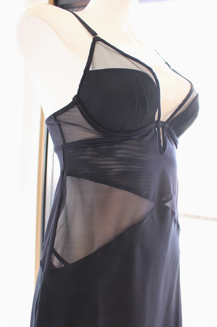 透け感と曲線が奏でるYue × Feticoのモードエレガンス Yue75G BLカラー ブラキャミソール