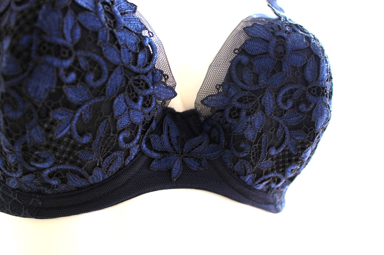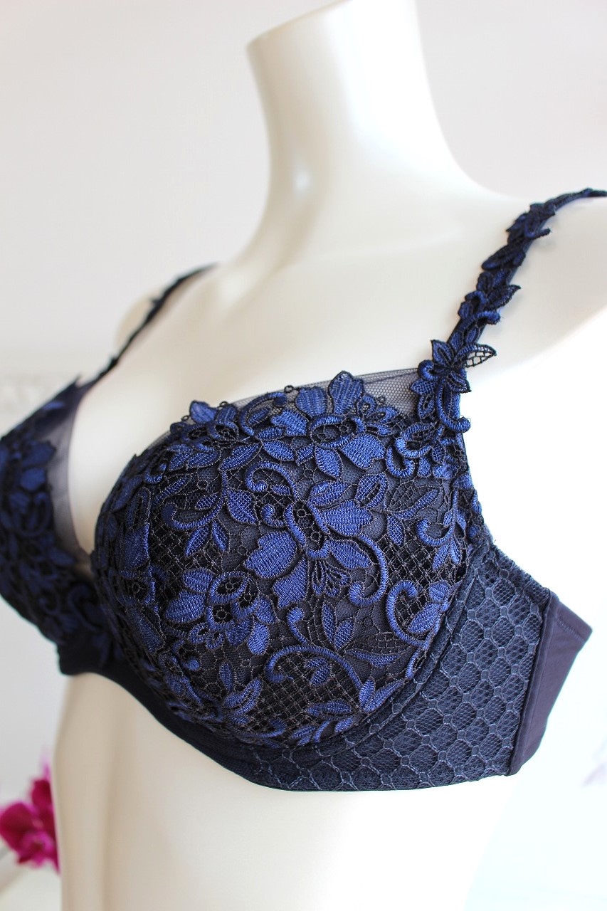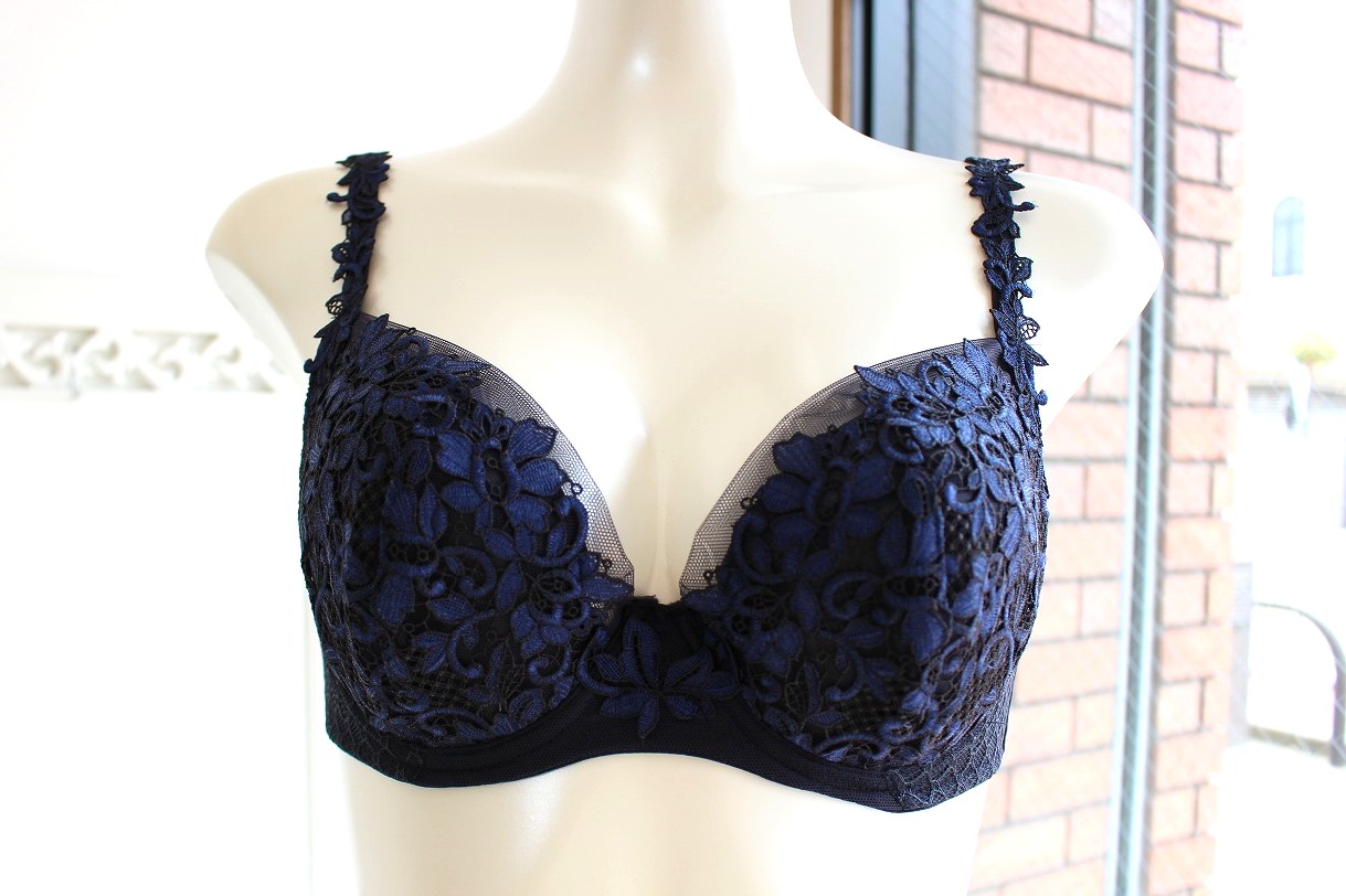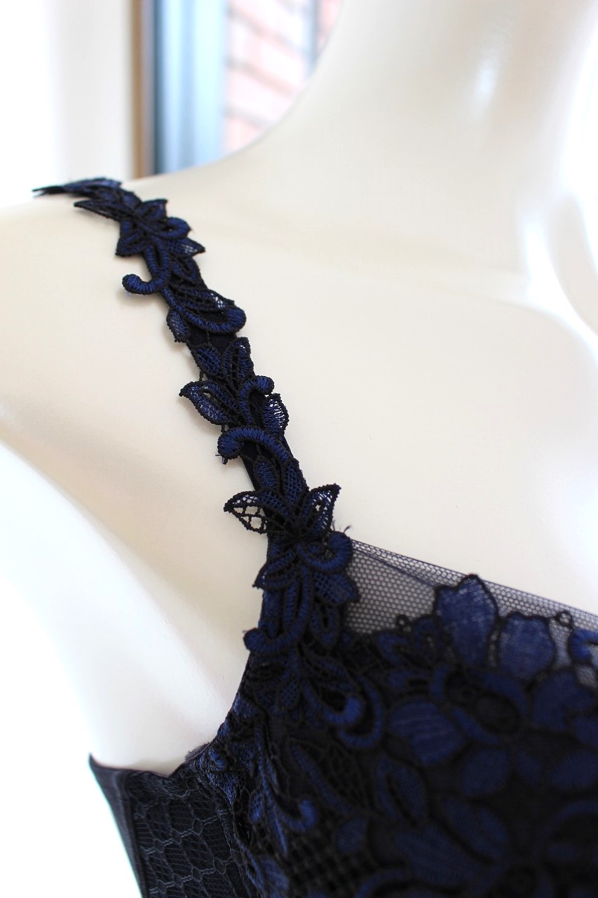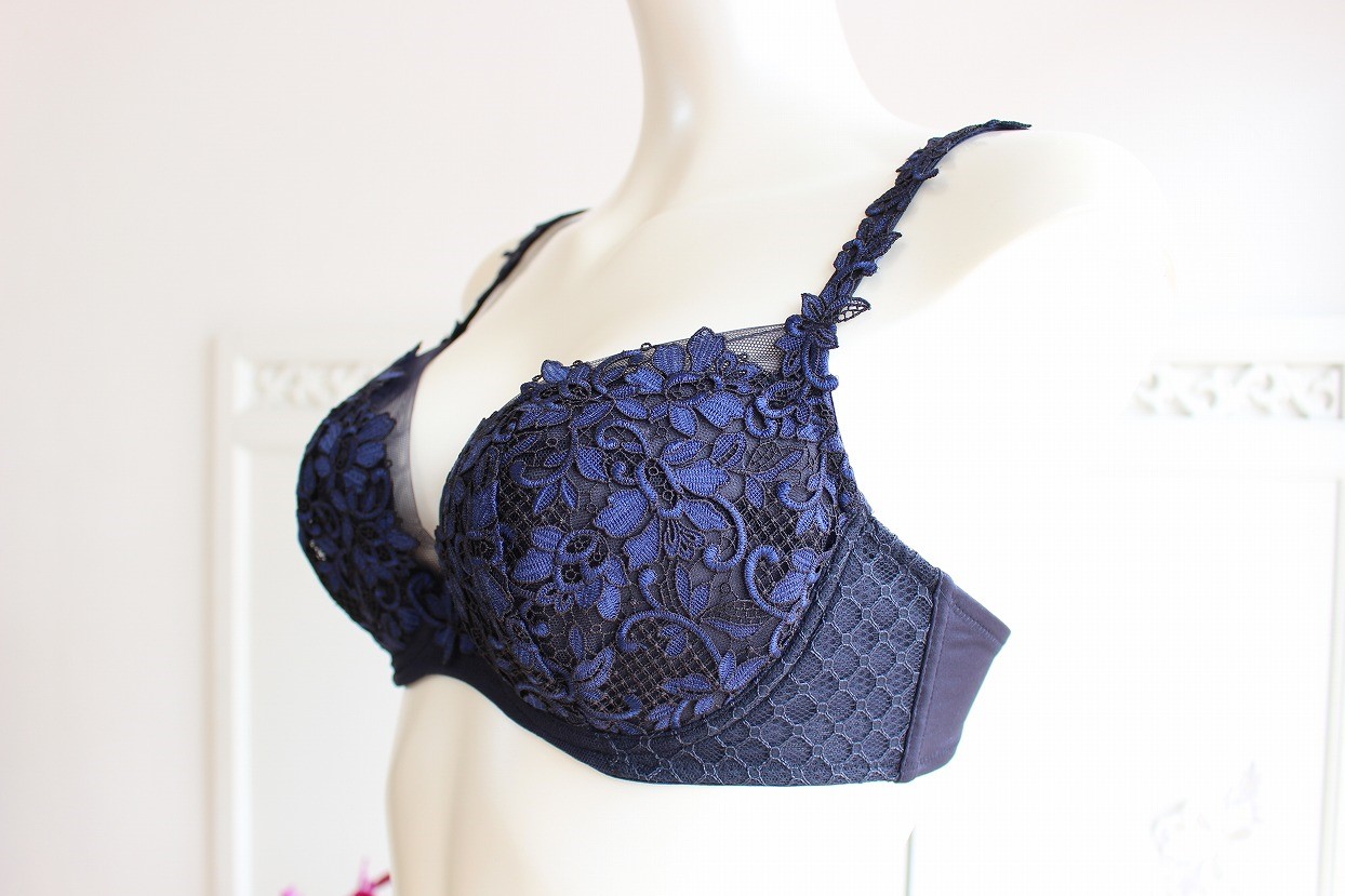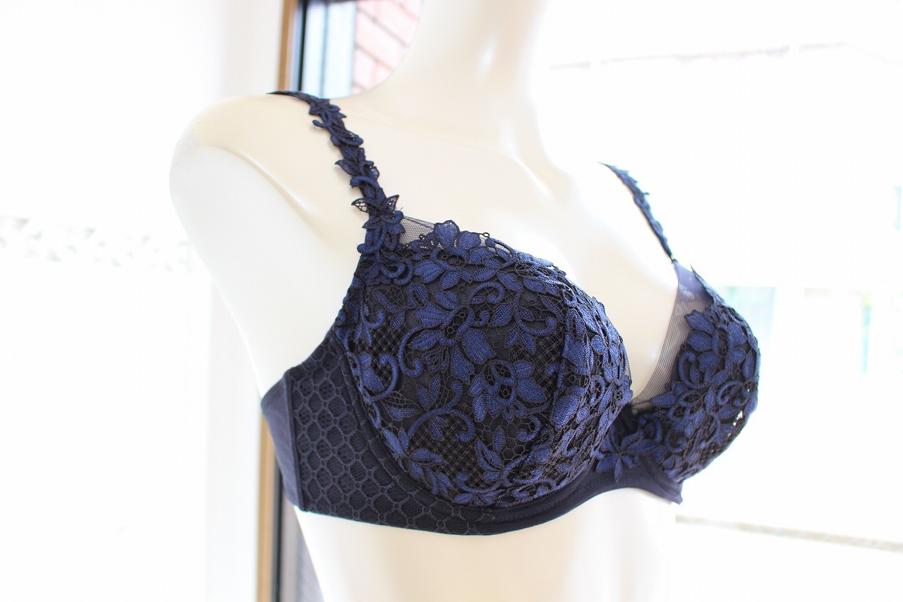 カップ上辺はチュール仕立てで軽くモダンな印象