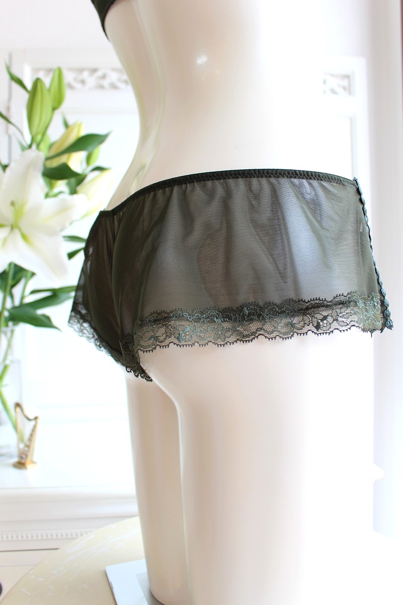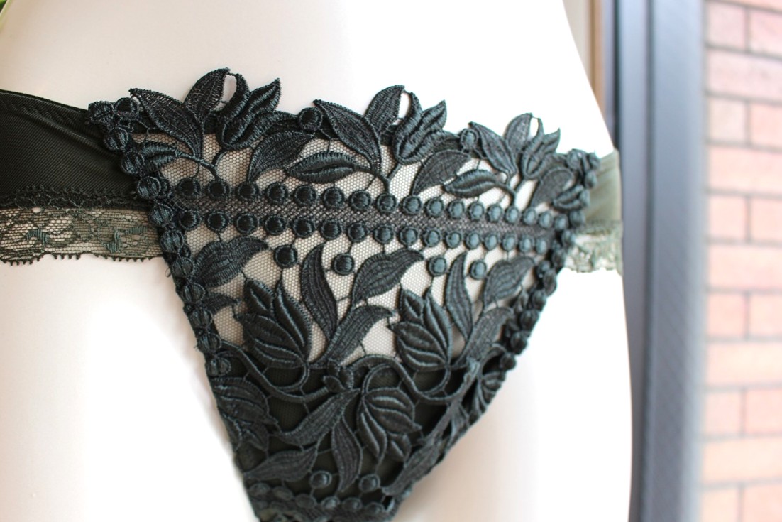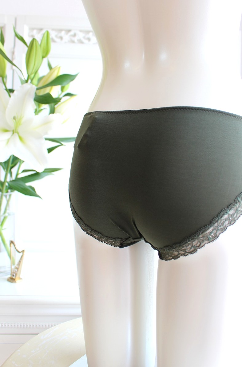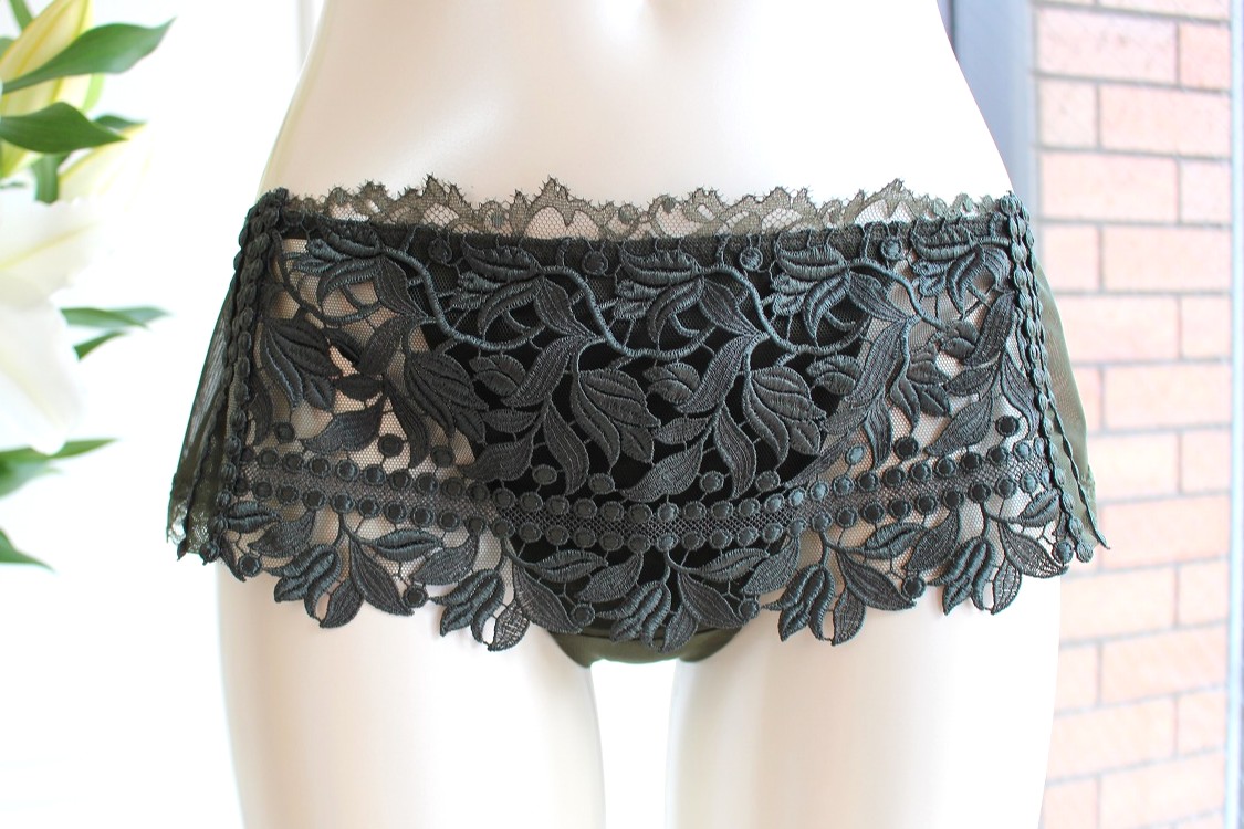 繊細なレースの縁取りがヒップラインを優しく包み込み、