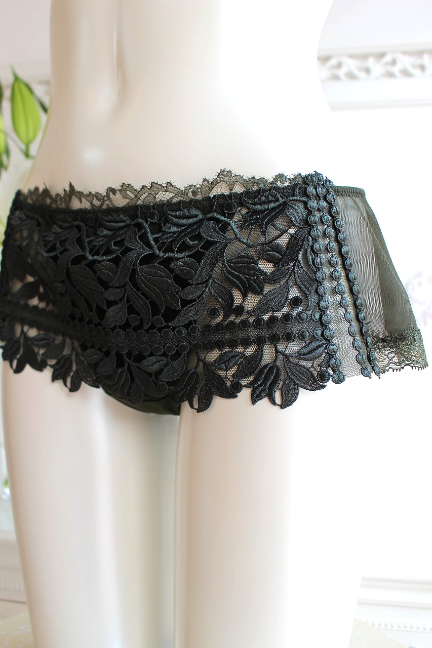 繊細なレースの縁取りがヒップラインを優しく包み込み、